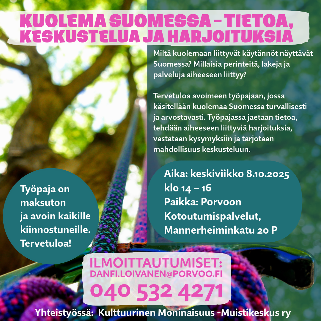 Maksuton työpaja: Miltä kuolemaan liitttyvät käytännöt näyttävät Suomessa? Millaisia perinteitä, lakeja ja palveluja aiheeseen liitty?