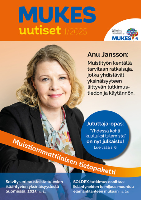 MUKES-uutiset on uusi sähköinen tietopaketti vanhustyön ja muistialan ammattilaisille. Julkaisemme uutisia kaksi kertaa vuodessa, ja tarjoamme ajankohtaista tietoa sensitiivisestä muistityöstä, kehittämishankkeista ja tutkimuksista sekä Suomesta että maailmalta.